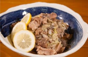 『いわて門崎丑』を使用した料理『塩ホルモンとスジのさっぱり煮』の作り方です。