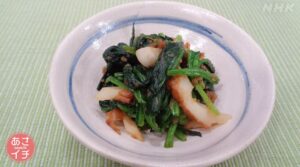 ほうれんそうのしょうがあえの作り方です。教えて下さったのは、松村眞由子先生(料理研究家)ほうれんそうとちくわを、「しょうがジャム」としょうゆであえた、手軽にできるあえものです。