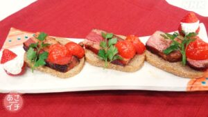 ベーコングリル バゲットの作り方です。教えて下さったのは、グッチ裕三先生(エンターテイナ―)「ベーコングリル」は、ちょっとぜいたくに厚切りベーコンとトマトにオリーブ油をふりかけて、グリルでこんがりと焼くだけ。焼けたトマトがソース代わりになり、バゲットとの相性も抜群です。